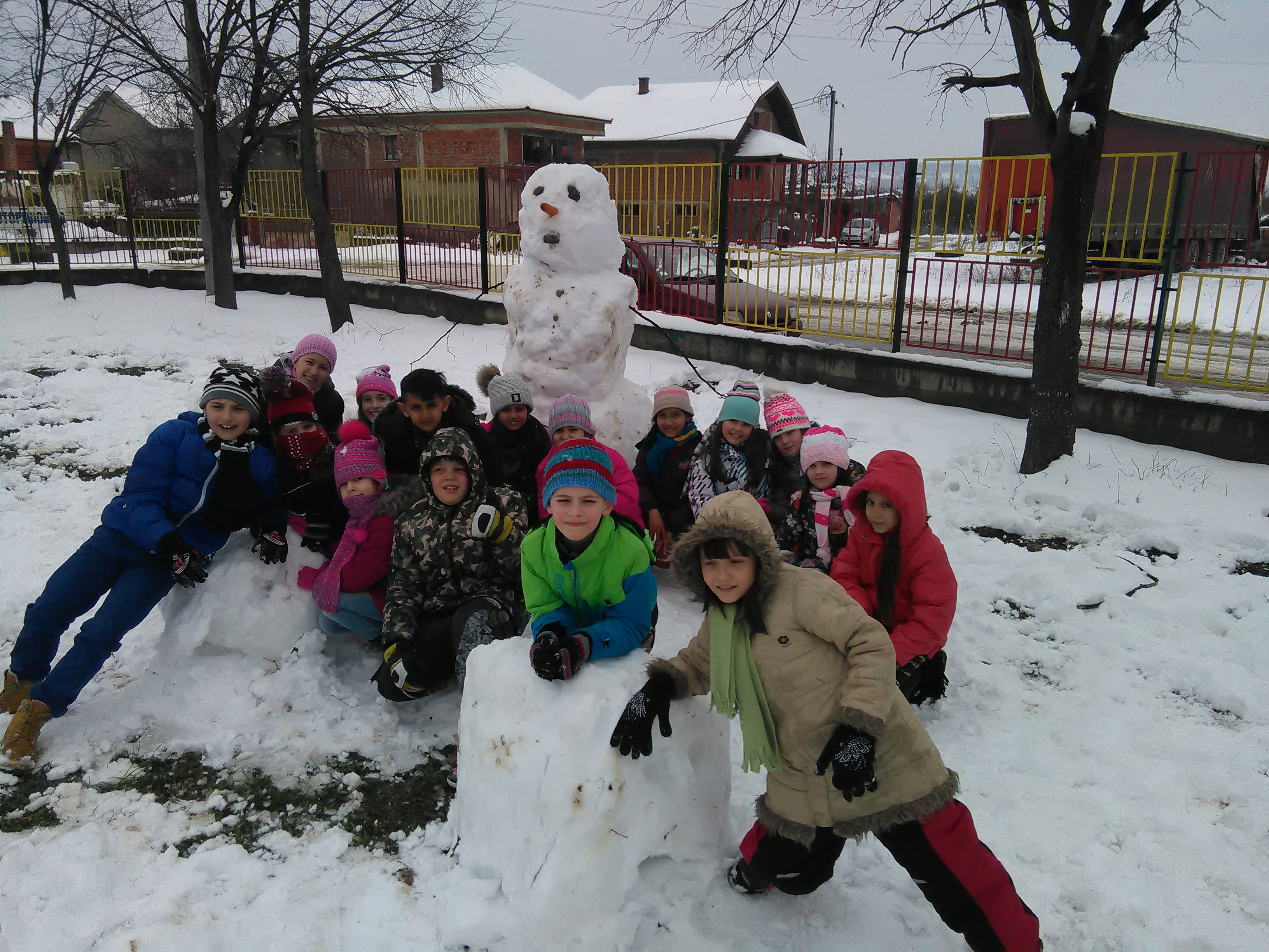 За ученике 2-2 разреда данас је био најлепши школски дан од почетка године. Разлог томе је што су ученици са својим учитељем на часу физичког васпитања у школском дворишту направили великог Снешка Белића, грудвали се и уживали у лепоти зиме.