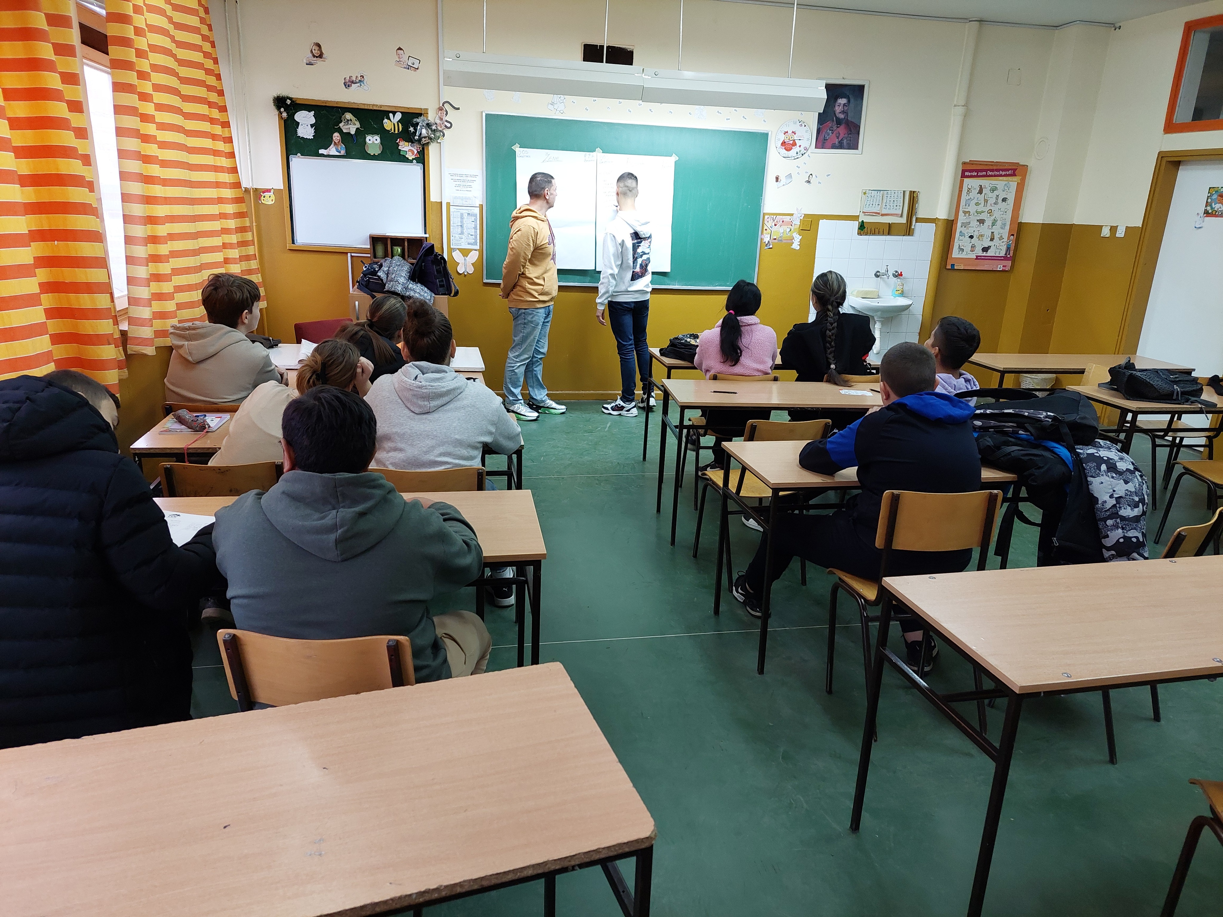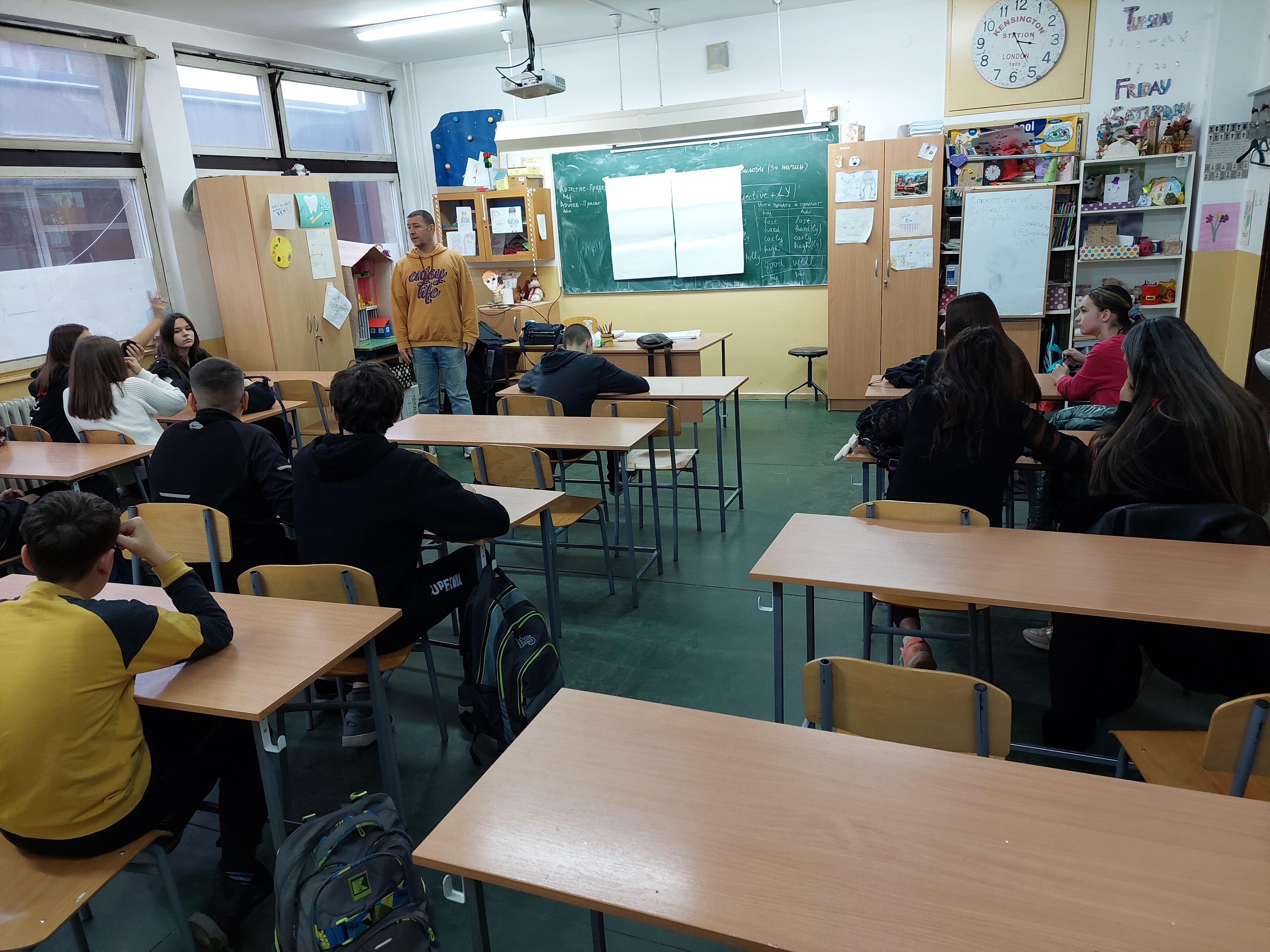 У сарадњи са Удружењем грађана СОС Власотинце за жене и децу жртве насиља организоване су презентације за ученике осмог разреда на тему: „Трговина људима“. Едукација осмака одвијала се од 13. до 15. децембра 2023.године у трајању од једног школског часа. Трећег дана ученици су имали прилику да гледају и едукативни филм на задату тему,а за најбољи ликовни рад у организацији Удружења грађана СОС Власотинце, на тему „Насиље у бившој Југославији“, награђена је Александра Стојиљковић,ученица 8/4.