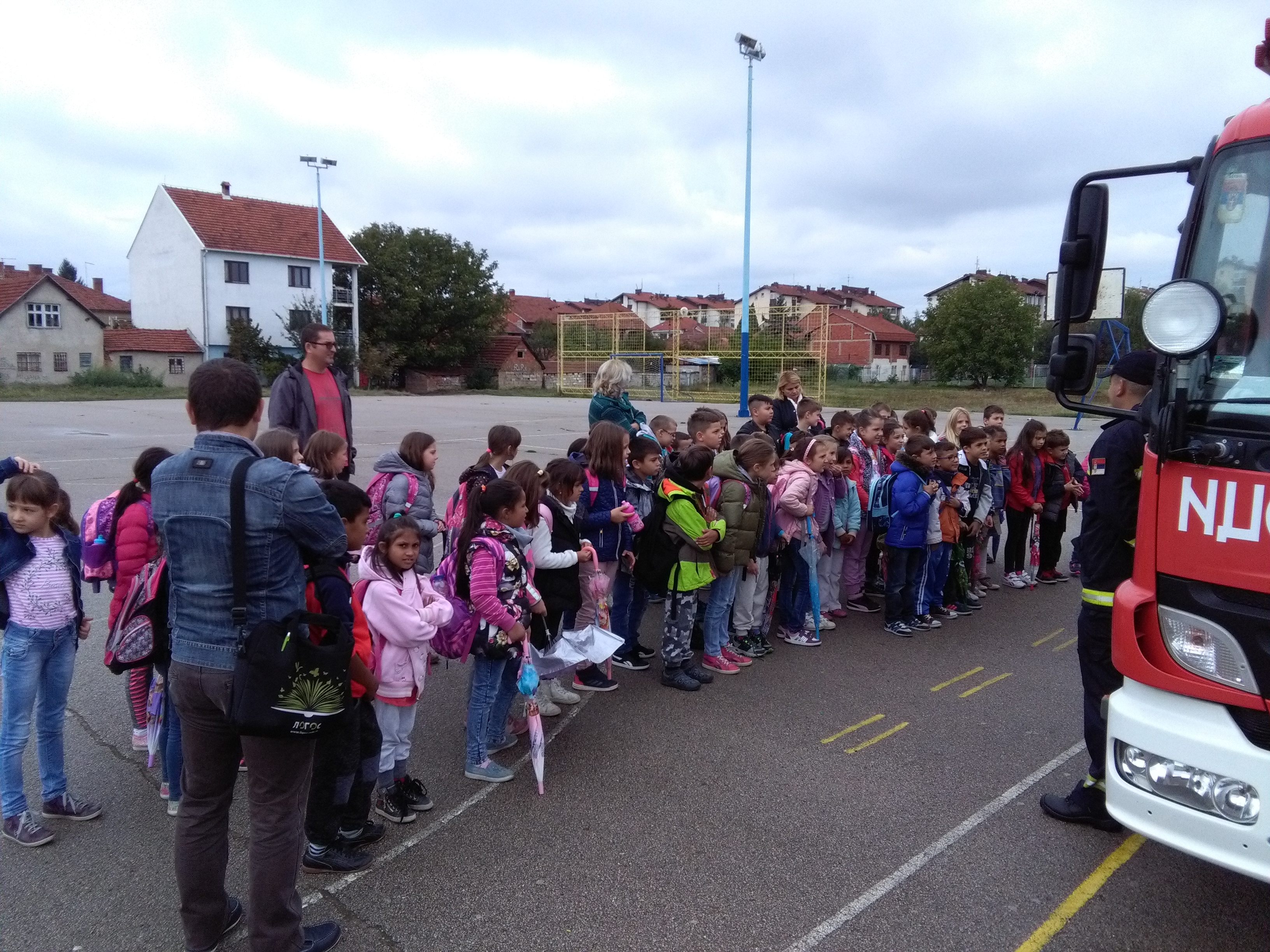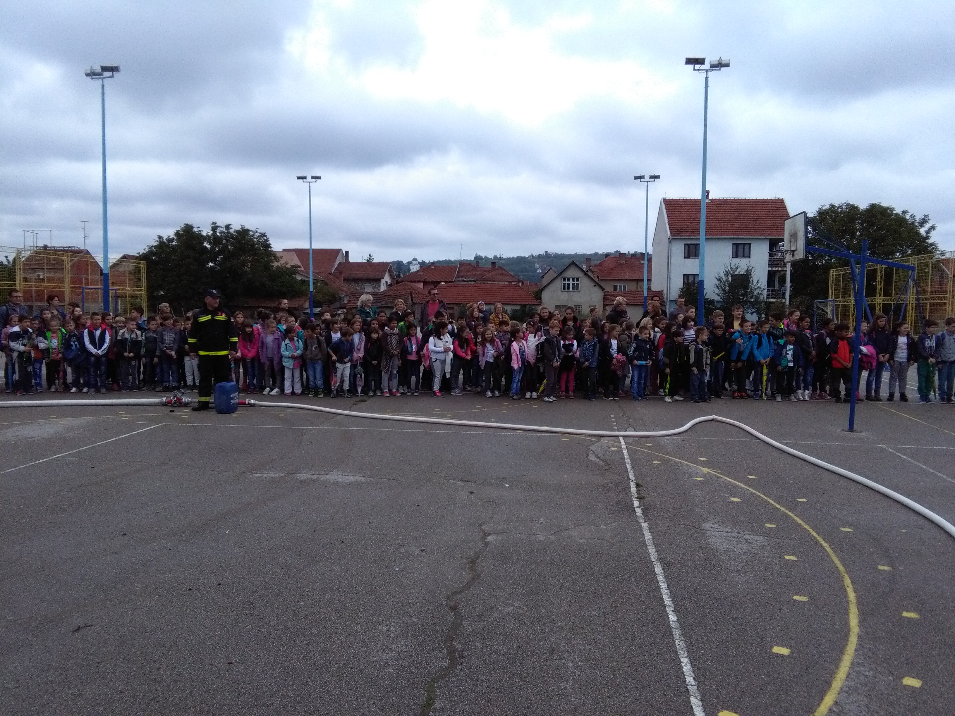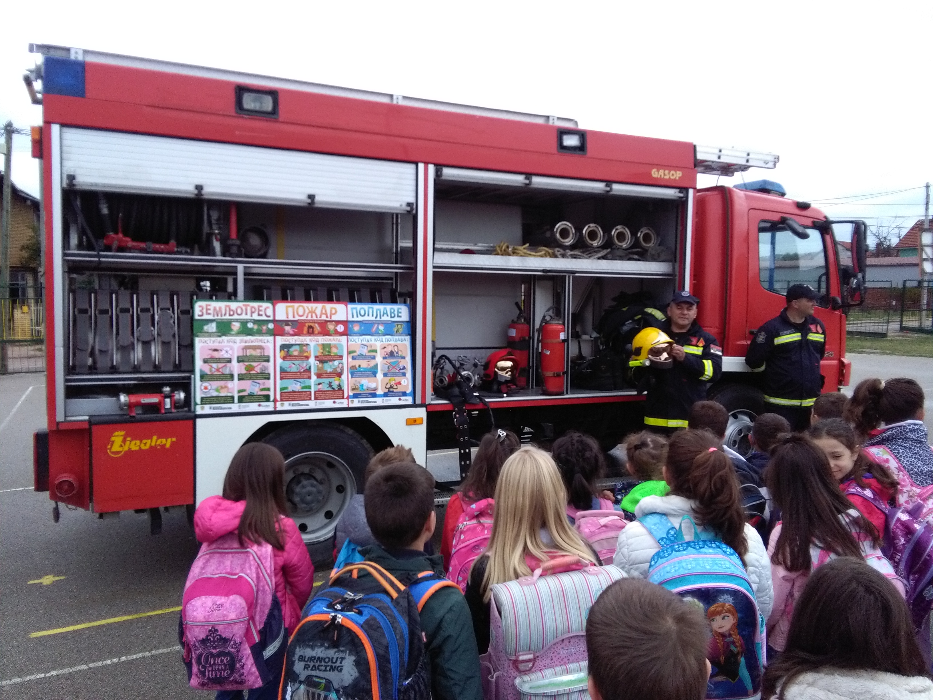 Министарство унутрашњих послова Републике Србије – Сектор за ванредне ситуације, прогласило је месец септембар месецом заштите од пожара. Планом је предвиђена презентација ватрогасне опреме и едукација ученика, што је и учињено данас у нашем школском дворишту. Ученици су имали прилику да виде ватрогасно возило, симулацију гашења пожара, ватрогасну опрему и да се упознају са опасностима од пожара и начинима реаговања у таквим ситуацијама. Представници министарства су школи поклонили плакате ЗЕМЉОТРЕС, ПОЖАР и ПОПЛАВЕ који ће бити постављени на видном месту у школском холу.